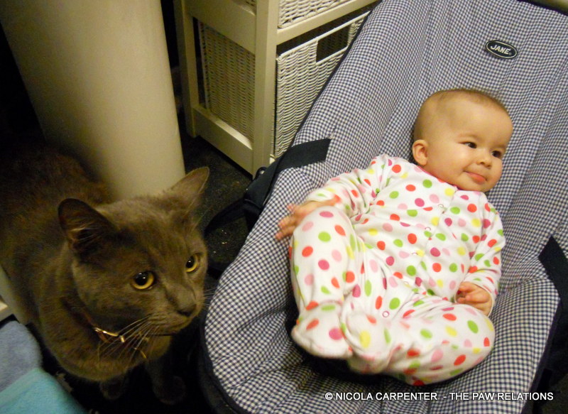 As we all know, babies require a lot of snoopervision and me being the only ladycat in the house the job of helping The Mum with the baby falls to me. Correct snoopervision of babies is important, you can't let them out of your sight for a second. Especially at baths time, because they splash... a lot.